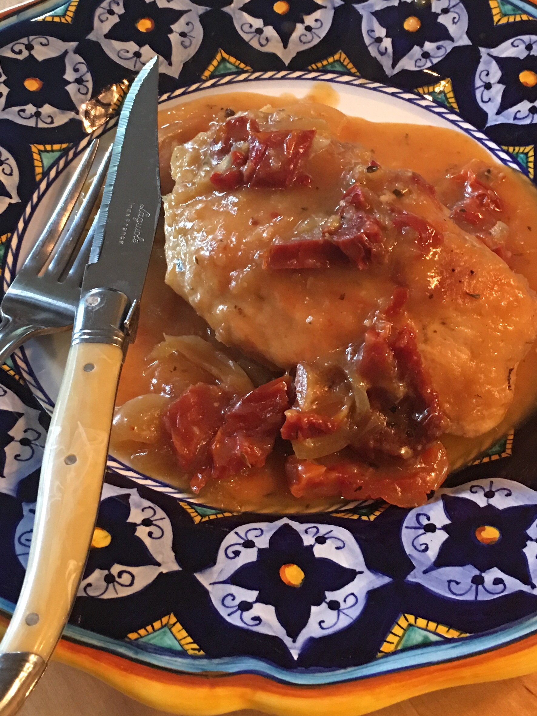 My kitchen smells amazing! I just finished doing some major reworking to a recipe to make it suit my tastes. Creamy sun-dried tomato sauce over moist chicken breasts.